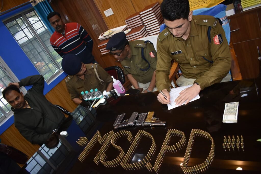 আব্দুল হালিম, বহরমপুর: মুর্শিদাবাদ জেলায় অস্ত্র পাচারকারীদের বড়সড় চক্রের পর্দাফাঁস করল জেলা পুলিশ। বুধবার বিকেলে বহরমপুর থানার সুভাষনগর এলাকায় এক ঝটিকা অভিযান চালিয়ে আগ্নেয়াস্ত্র, বিপুল পরিমাণ কার্তুজ এবং জালনোট সহ তিনজনকে গ্রেফতার করেছে পুলিশ। বৃহস্পতিবার সকালে এক সাংবাদিক সম্মেলনে এই সাফল্যের কথা জানান অতিরিক্ত জেলা পুলিশ সুপার (হেড কোয়ার্টার) মাজিদ ইকবাল খান।