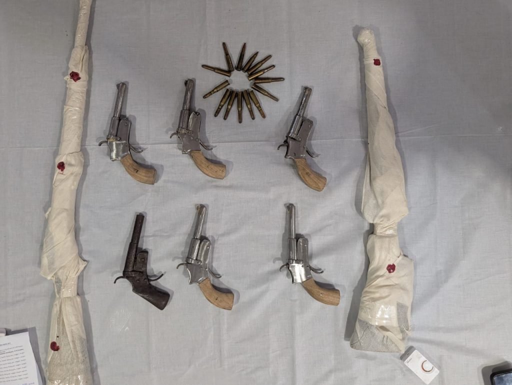 নিউজ ফ্রন্ট, মুর্শিদাবাদঃ মুর্শিদাবাদের বেলডাঙায় পুলিশের বড় সাফল্য। সোমবার গভীর রাতে গোপন সূত্রে খবরের ভিত্তিতে কালীতলা–ফতেপুর রোডে বিএড কলেজের কাছে অভিযান চালিয়ে গ্রেফতার করা হয় কুখ্যাত অস্ত্র কারবারি নৌশাদ মণ্ডলকে। ধৃতের কাছ থেকে উদ্ধার হয়েছে ৬টি ওয়ান শটার পাইপ গান, ২টি দেশি মাস্কেট এবং ১৪ রাউন্ড গুলি।