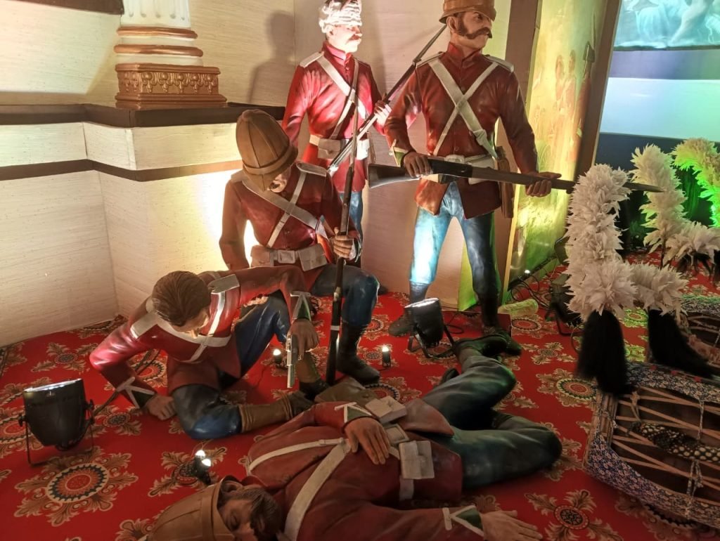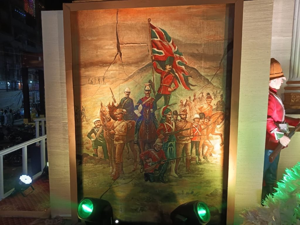 মণ্ডপের কেন্দ্রে থাকবে মা কালীর জাগ্রত রূপ হাতে খড়্গ, পদতলে অশুভ শক্তির প্রতীক। চারপাশে ফুটে উঠবে সিপাহীদের সাহস, ত্যাগ ও বিদ্রোহের দৃশ্যচিত্র। শিল্পীরা নিখুঁত কারিগরিতে ফুটিয়ে তুলেছেন ইতিহাসের সেই রণক্ষেত্র, যেখানে প্রতিবাদ ছিল ভক্তিরই এক রূপ।