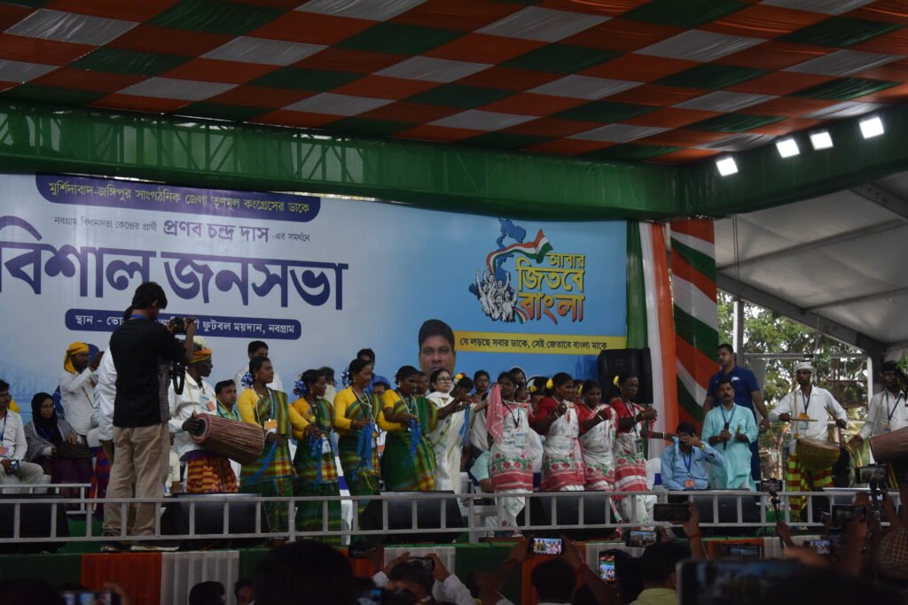 এদিন নবগ্রামের জনসভায় তৃণমূল প্রার্থী প্রণবচন্দ্র দাসের সমর্থনে আয়োজিত প্রচার মঞ্চে মুখ্যমন্ত্রীর সঙ্গে উপস্থিত ছিলেন জঙ্গিপুরের সাংসদ তথা সাংগঠনিক জেলা সভাপতি খলিলুর রহমান, লালগোলার বিদায়ী বিধায়ক মহম্মদ আলি এবং রাজিব হোসেন-সহ অন্যান্য নেতৃবৃন্দ। তবে লক্ষ্যণীয়ভাবে সভায় অনুপস্থিত ছিলেন বিদায়ী বিধায়ক কানাইচন্দ্র মণ্ডল।