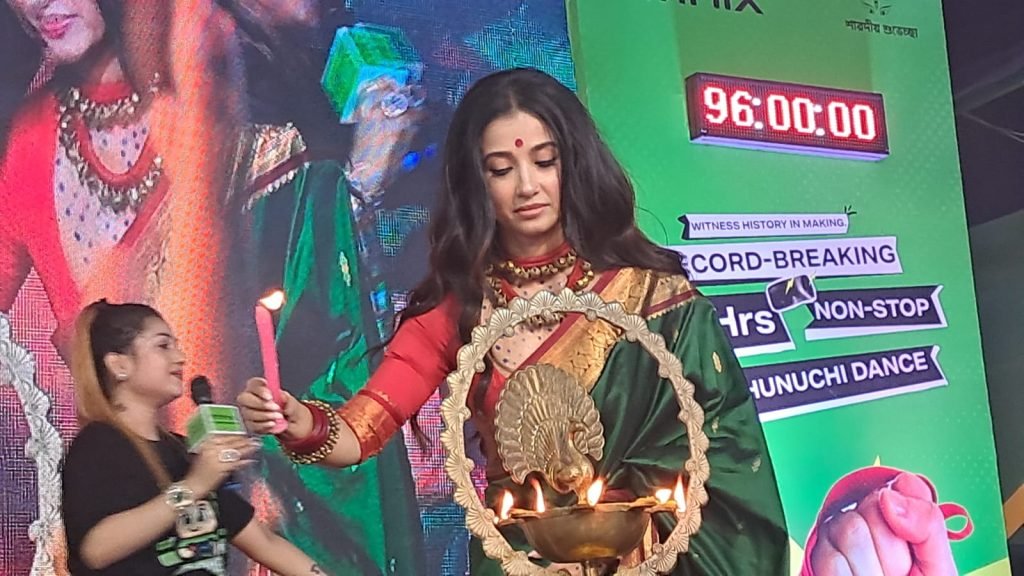 দুর্গাপুজোর মণ্ডপে এবার প্রযুক্তি ও সংস্কৃতির অনন্য মেলবন্ধন। নিউটাউন সর্বজনীন দুর্গোৎসবে শুরু হলো ৯৬ ঘণ্টার নিরবচ্ছিন্ন ধুনুচি নাচ রিলে, যা শীঘ্রই ইন্ডিয়া বুক অফ রেকর্ডস-এ স্থান পেতে চলেছে। ঐতিহ্য ও আধুনিকতার এই ঐক্যবদ্ধ আয়োজনের সূচনা করলেন জনপ্রিয় অভিনেত্রী মনামী ঘোষ।