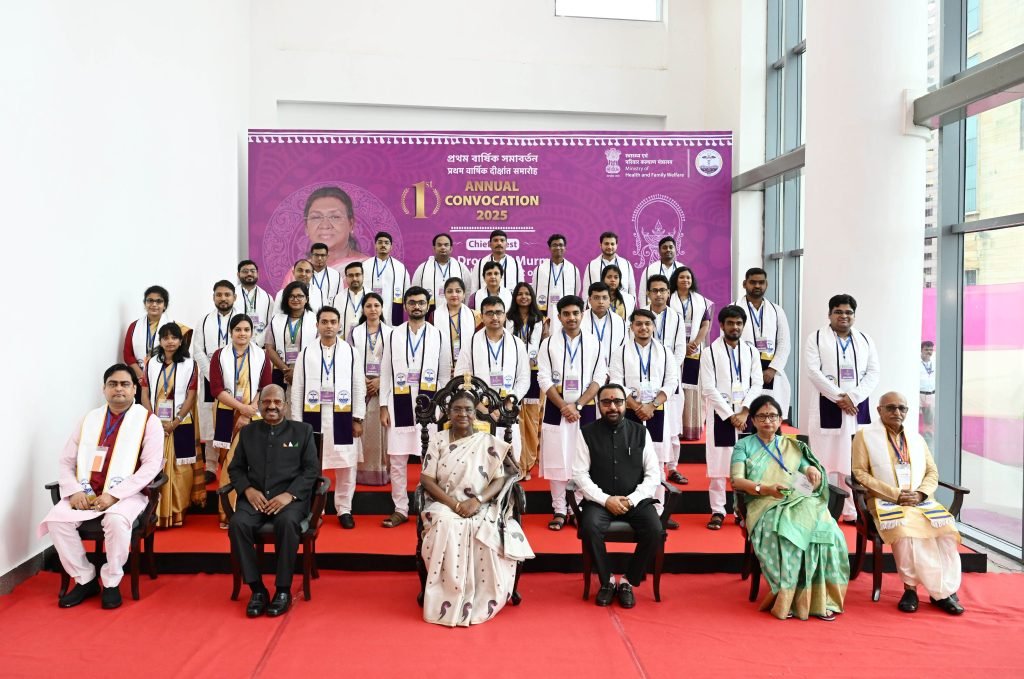নিউজ ফ্রন্ট, কল্যানী, ৩০ জুলাই ২০২৫: আজ নদিয়ার কল্যাণী এইমসের উদ্বোধনী সমাবর্তন অনুষ্ঠানে প্রধান অতিথি হিসেবে উপস্থিত ছিলেন ভারতের রাষ্ট্রপতি শ্রীমতী দ্রৌপদী মুর্মু। এই অনুষ্ঠানে তিনি ৪৮ জন এমবিবিএস স্নাতক এবং ৯ জন পোস্ট-ডক্টরাল সার্টিফিকেট কোর্স (PDCC) স্কলারকে ডিগ্রি প্রদান করেন। ২০১৯ সালে যাত্রা শুরু করা কল্যাণী এইমসের জন্য এটি একটি গুরুত্বপূর্ণ মাইলফলক।