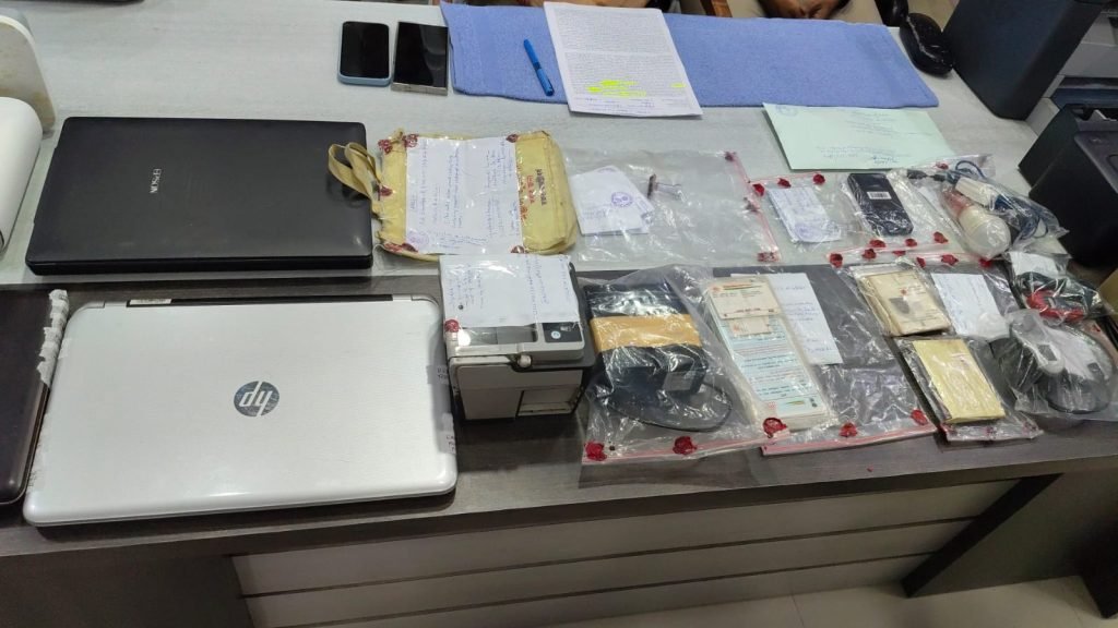 ২টি ল্যাপটপ, ১টি স্ক্যানার, ২টি প্রিন্টার, ১টি ল্যামিনেশন মেশিন, ৩টি ফিঙ্গারপ্রিন্ট স্ক্যানার, ১টি ওয়েবক্যাম, ১৩টি জাল আধারকার্ড, শতাধিক পাসপোর্ট ছবি, বিভিন্ন সরকারি সিলমোহর সহ স্ট্যাম্প এবং আলুগ্রাম পঞ্চায়েত প্রধানের নকল রাবার স্ট্যাম্প।